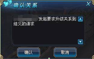 当队伍中申请人向另一人发送提升好友关系至结义关系的申请时,弹出对话框如下图所示:
