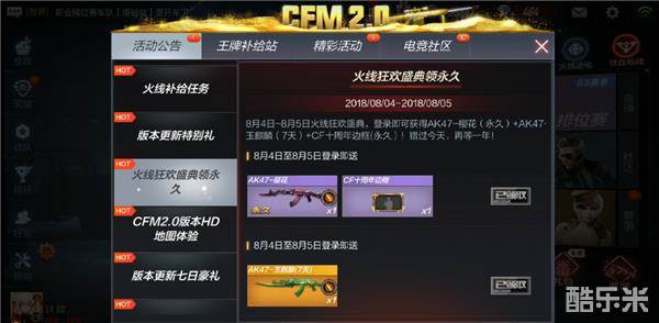 2.0版本更新后,游戏内的活动也是推出了非常多的福利,例如在8月4日-8月5内登录就可以免费获得7天AK47-玉麒麟的使用权。与火麒麟仅仅相差一字,而且造型也是完全相同,再加上仅仅只送了7天,这把武器的实战效果时丝毫不能小觑的,下面就让我们来一起看下。