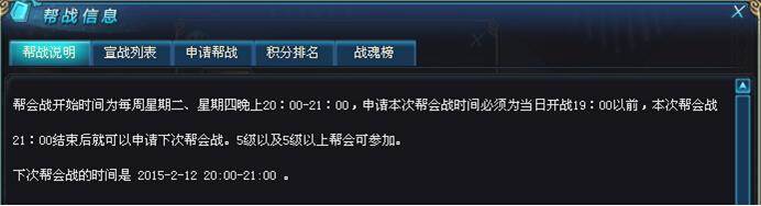 在帮战时间中显示帮战开启的具体时间格式为:2009-08-18 20:00-21:00