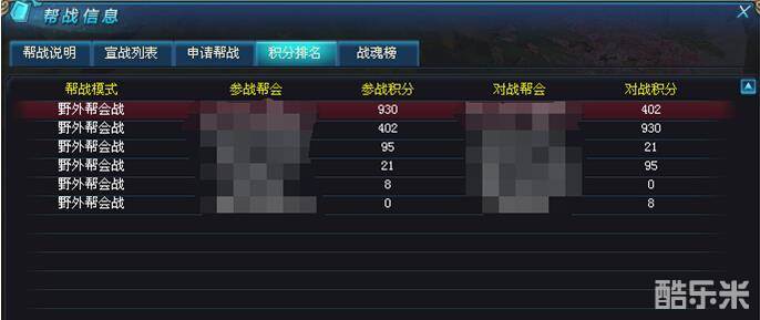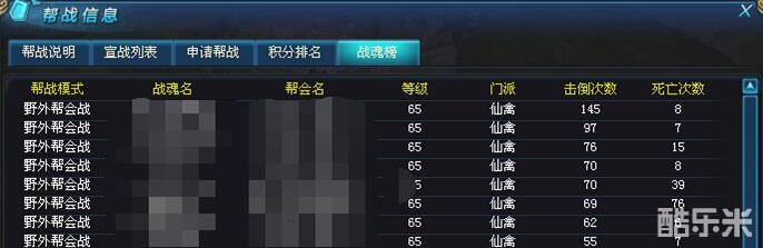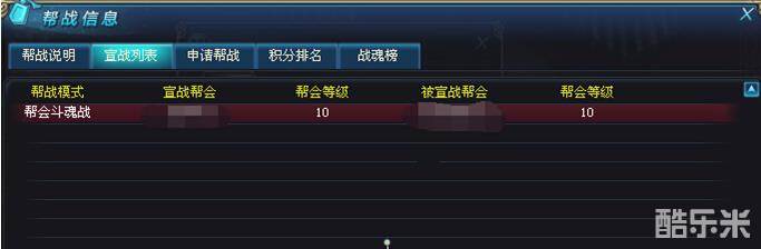 宣战列表中显示宣战帮会名称、被宣战帮会名称、帮会等级,排列按照申请时间排列,申请早的帮会排列靠前。