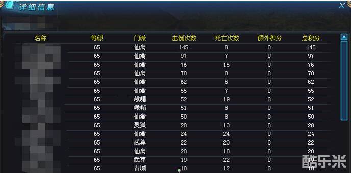 击倒排名界面中显示在帮战开始期间20:00-21:00,该帮会所有会员总共击倒数量,击倒排名按照击倒数量降序排列。显示列表属性为参战帮会与帮会击倒数量,该击倒数量在帮战结束后第2天00时01分统计完成并显示。