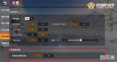目前,“荒野歌单”里已有三首旋律轻快的短歌,分别是《黑色风暴》《落地成盒喵喵喵》与《落地成盒》,让玩家们在紧张激烈的战斗之余享受更加惬意的驾驶体验。若有玩家想关闭车载音乐效果,也可在【设置-声音设置】界面进行选择,且玩家下车后音乐播放随即停止。