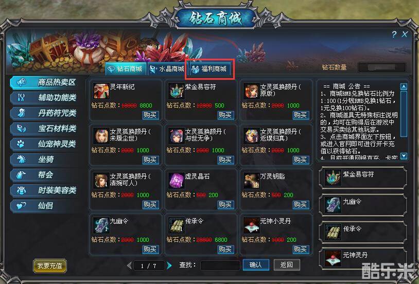 打开钻石商城,如下图,点击右上角“福利商城”