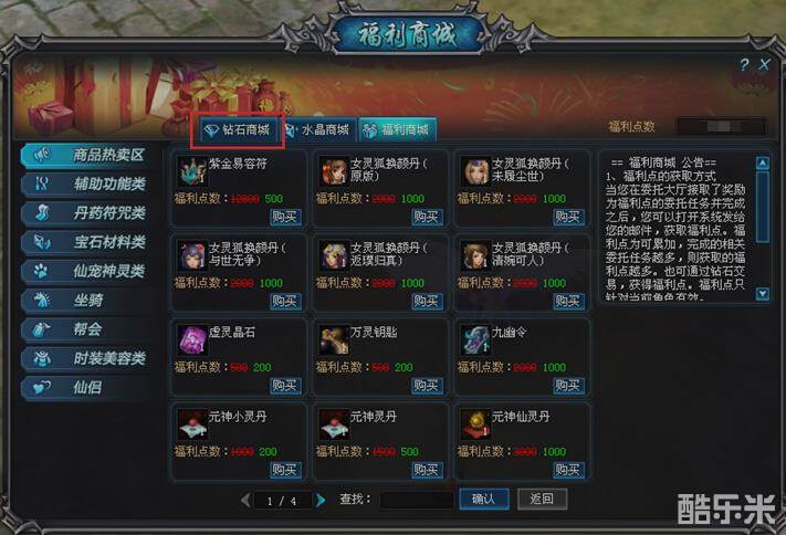 什么是福利商城 福利商城需要使用福利点数购买道具,福利点数无法转移,只限于当前角色使用,福利商城购买的物品都为绑定物品。