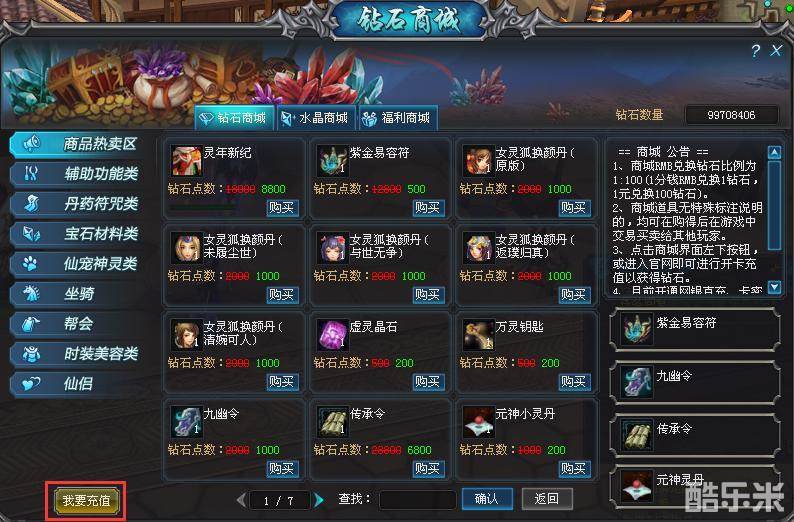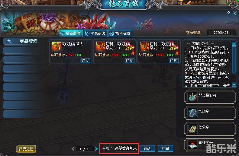 钻石点数随账号使用,钻石商城用有种类最多、品种最全的各类游戏道具。
