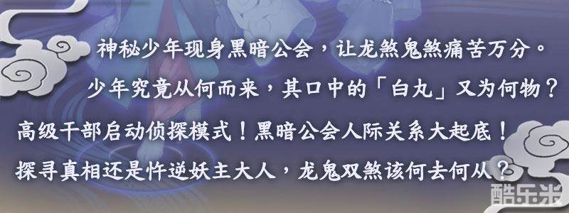 本期限时祭典「妖主的秘密」剧本由原著作者发飙的蜗牛监修。讲述了莽撞正太突然现身黑暗公会,与龙鬼双煞以及一众高级干部之间发生的故事,新成员的加入为阴郁死寂的黑暗公会增添了不少有趣的色彩。想知道他们之间发生了什么样的化学反应吗?一起来围观吧!