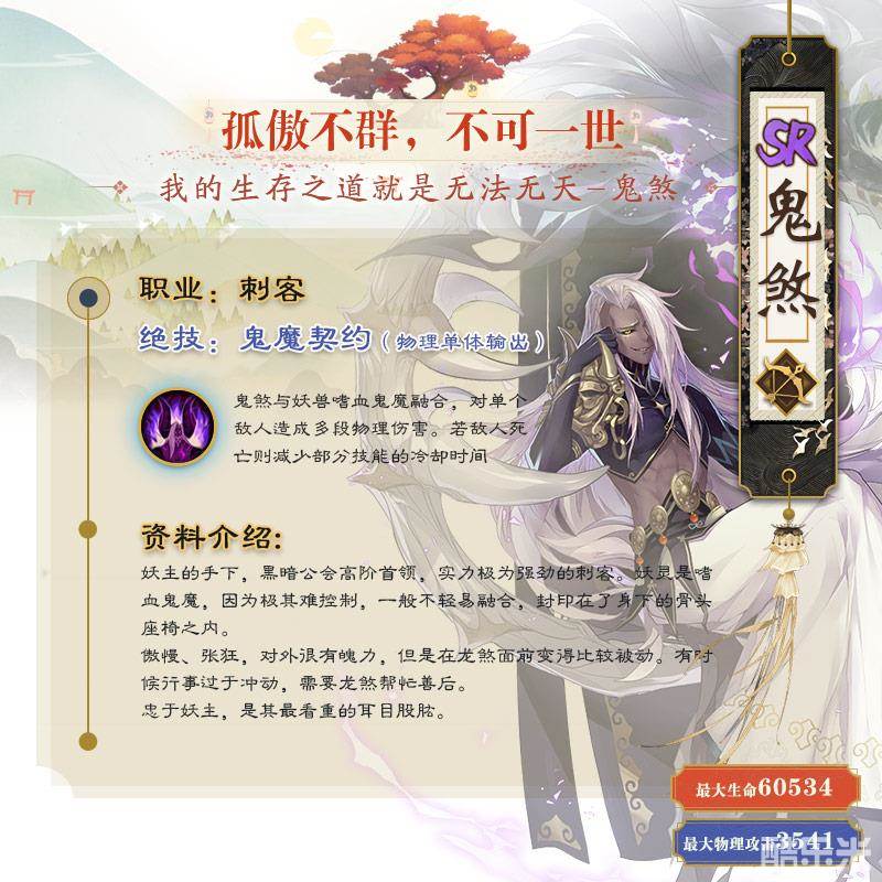 在同期的限时祭典活动「妖主的秘密」中,活动的限定妖灵师——「SSR妖主」将加入限时推荐聚灵!另外,「SR鬼煞」也将在推荐聚灵时限时加入!