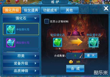 装备升级的同时不得不提到宝石的镶嵌,宝石分为攻击、气血、防御三种,通过日常活动可获得宝石精华,使用宝石精华可提升宝石等级,更可用对应的宝石神精直升一级。