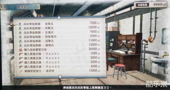 剧情过关后解锁医务室,可以提升兵种等级,最高30级。
