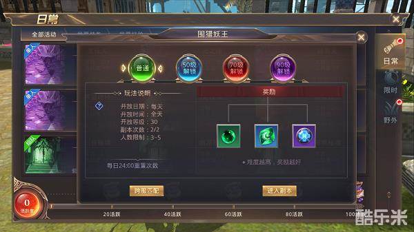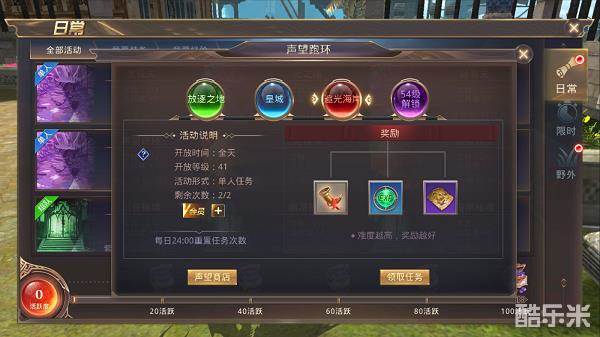 另外要提醒的是,在日常界面下方,活跃度达到一定数值,可以领取宝箱,获得丰富的奖励,玩家们千万别忘记领取。