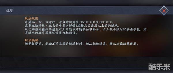 需要在快活林-血衣堂中至少解锁1名精品品质的随从。会随机选择已经解锁的随从参战。
