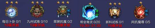 帮派育灵:10级加入帮派后开启,每日可完成1次,每日9-16时接取任务育灵,19:30-21:30击杀魂缚获得奖励;