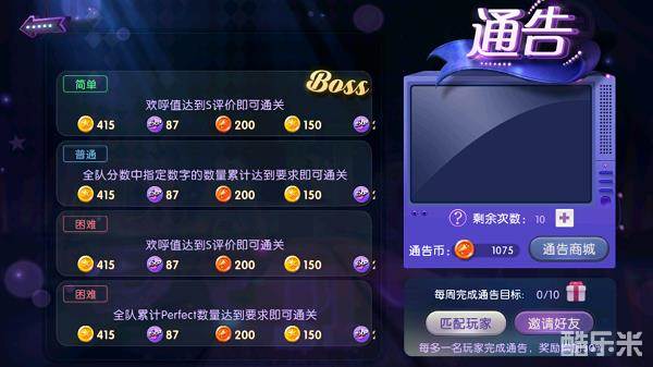 咦,上图中的普通难度要求怎么没见过?原来这是最新上线的“收集数字”通告模式。在这个模式中,你和小伙伴的得分里,某个数字必须要出现一定的次数。新模式不仅好玩,而且非常考验小伙伴们之间的默契。和小伙伴们投票选出想要完成的通告,来个深呼吸,走上属于我们的舞台吧~跳出最整齐的舞步,胜利在向你们招手!