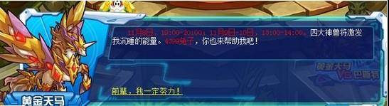 来到天马祭坛,进入动画剧情。剧情结束后,黄金天马告诉我们,活动时间为11月8日19:00-20:00,11月9日-10日13:00-14:00。赛尔们要记得按时来参加活动哦!