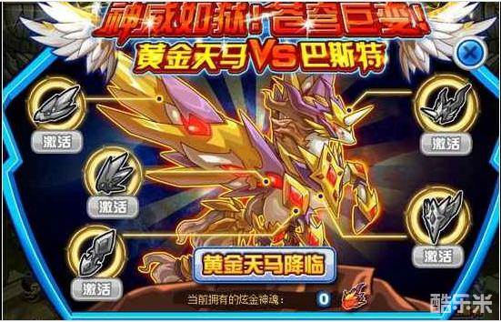 点击左边的“召唤黄金天马”按钮后,我们可以看到黄金天马合成界面!需要收集炫金神魂来激活黄金天马各个部位。黄金飞翅铠甲需要10个炫金神魂,黄金护臂铠甲需要8个炫金神魂,黄金护腿铠甲需要8个炫金神魂,黄金头盔铠甲需要6个炫金神魂,黄金护身铠甲需要6个炫金神魂。一共需要38个炫金神魂!大家要慢慢开始收集了!