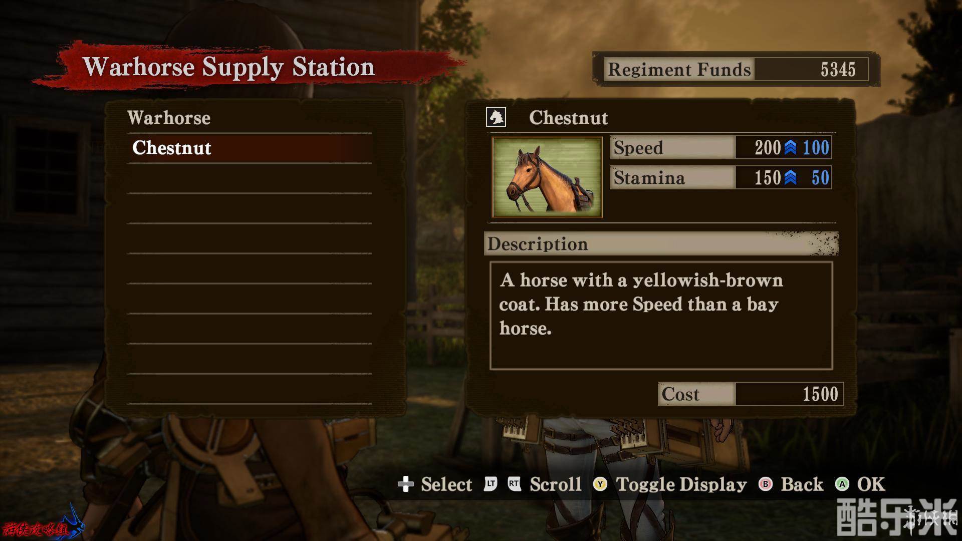 [战马]属性:[Speed|速度]、[Stamina|耐力],升级战马会增强所有属性。战马在调查模式中可用,是在没有树木,建筑等环境条件支持下的重要移动手段。耐力在使用冲刺时下降,普通状态下缓慢恢复。
