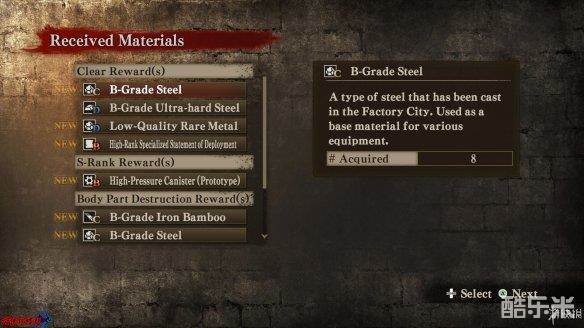 之后的是材料结算界面,会详细列出[Clear Reward|清理奖励]、[S-Rank...|S评价奖励 ]、[Body Part...|身体部分奖励]的具体信息。
