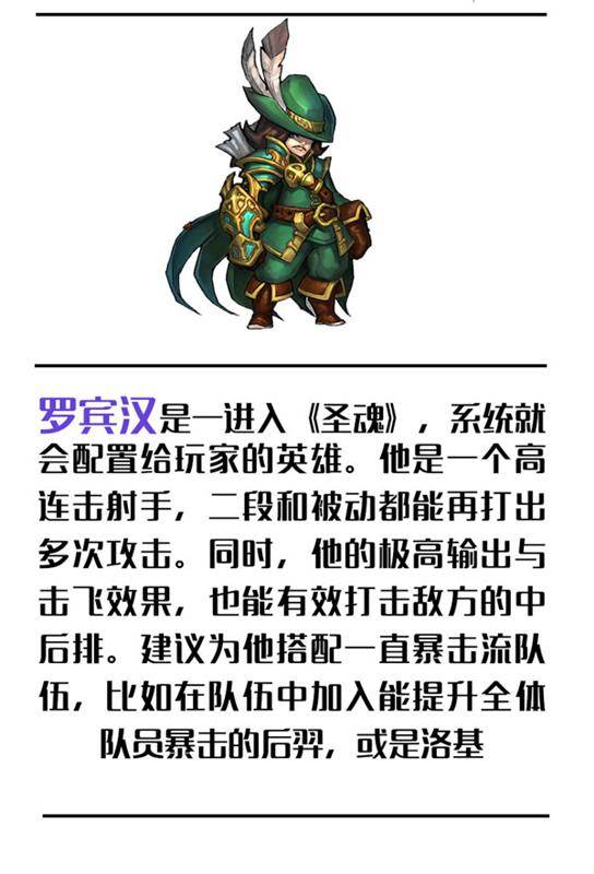 罗兵汉是是英国民间传说中的英雄人物,人称汉丁顿伯爵。他武艺出众、机智勇敢,仇视官吏和教士,是一位劫富济贫、行侠仗义的绿林英雄。在《圣魂》的世界中,他是一个身着草色轻甲,手持弓弩的射手