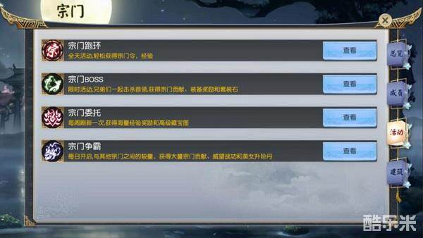点击活动即可查看宗门活动,日常活动限时活动皆可参与,大量宗门贡献,经验,极品奖励等你来拿哦!