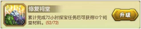 这个技能供给额外雕像建筑材料,每提升一级额外增加30个材料,满级后每探宝72小时额外获得600个材料。