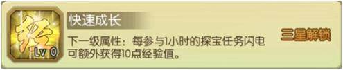 这个技能供给探宝熊猫额外的经验,每提升一级额外增加10点经验,满级后每探宝1小时额外获得200经验。