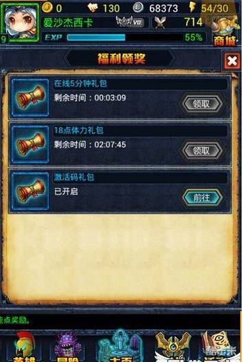 在线5分钟不下线可以领取,5分钟领包一个,领一次时间会加长哦,礼包里面的东西是随机送的哦。在线3个小时内不下线可以领取18点体力哦。