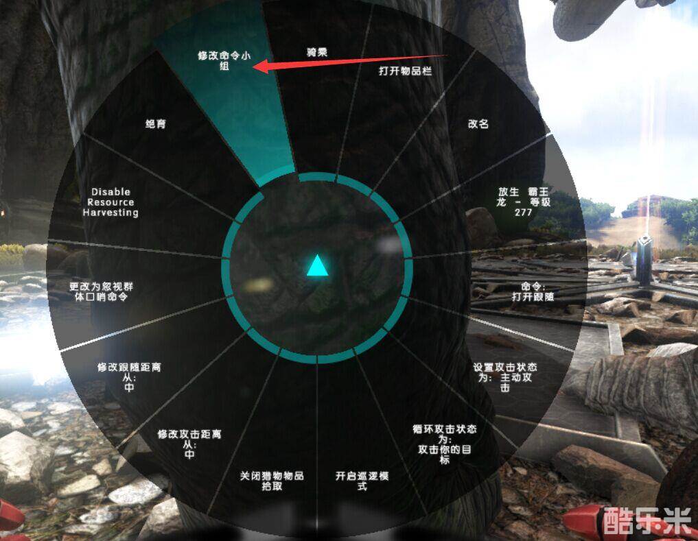 走到恐龙身边,按住E打开轮盘,找到这个选项。