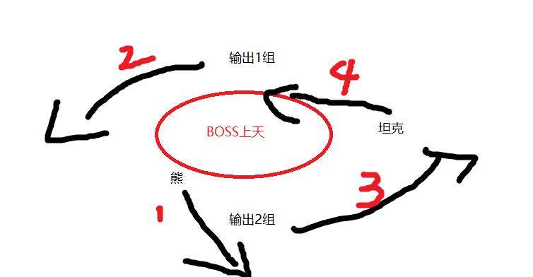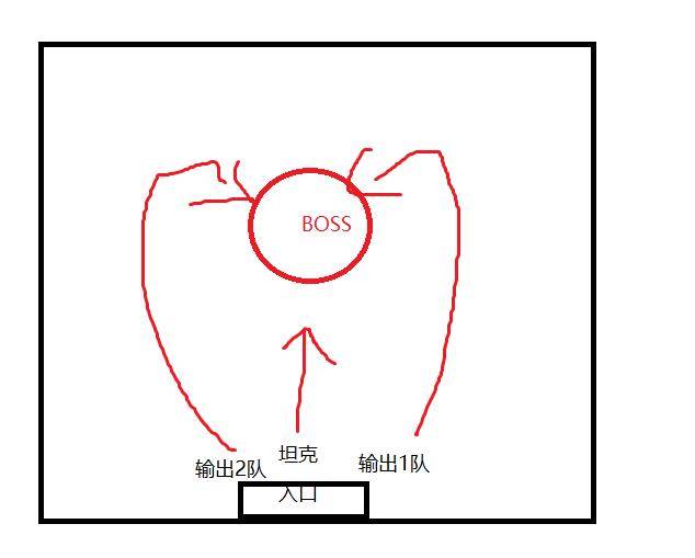 坦克组接怪顶住BOSS扛BOSS伤害,输出组马上绕侧面围住BOSS。