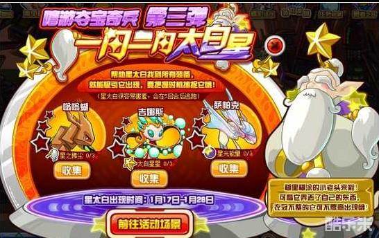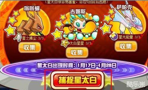 进入动画剧情,剧情结束后出现活动界面。打败嗡嗡蝴、吉娜斯、萨帕克,收集星之拂尘、太白星星、星光能量各3个,就可开启捕捉星太白的机会。星太白会在5回合内逃跑。