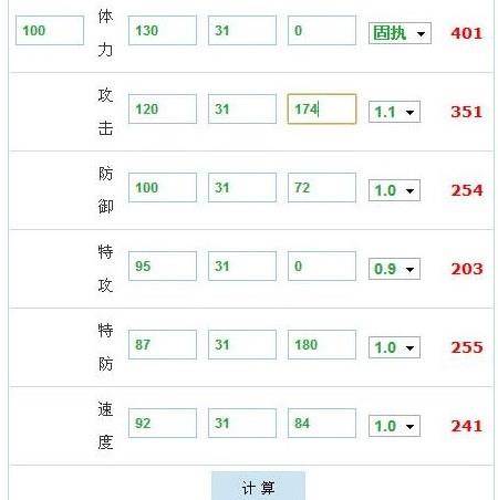 ①:攻击254、体力252、速度4。适合性格:固执、开朗。