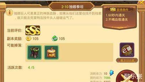 首次SSS奖励金币2.5w,可能掉落先知良靴、优质面粉。