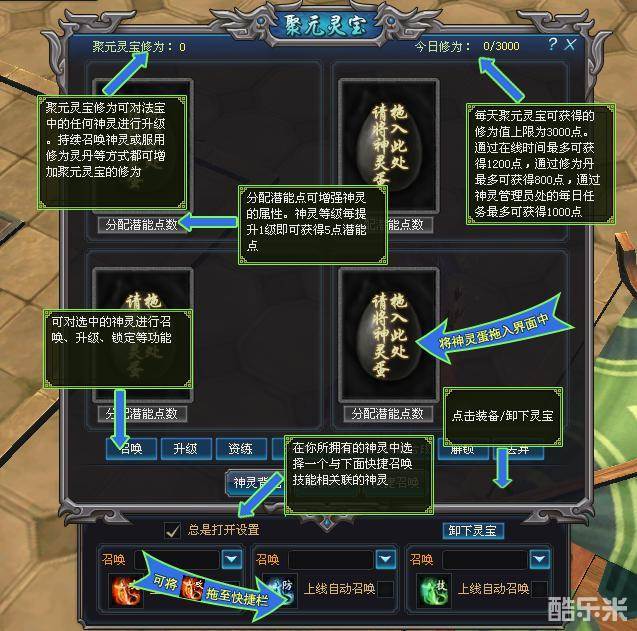 5.“聚元灵宝”是神灵借助的养成工具,如其说明“聚五行之灵气、化苍穹之元素、御万物至精魄、成旷世之修为”,所以神灵从初期渐变养成到后期,需依靠“聚元灵宝”这一稀世法宝。下面介绍详细神灵。