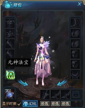 一是可通过鼠标左键背包内的聚元灵宝,直接拖至装备栏主法宝左边的“元神法宝”格子内,如下图