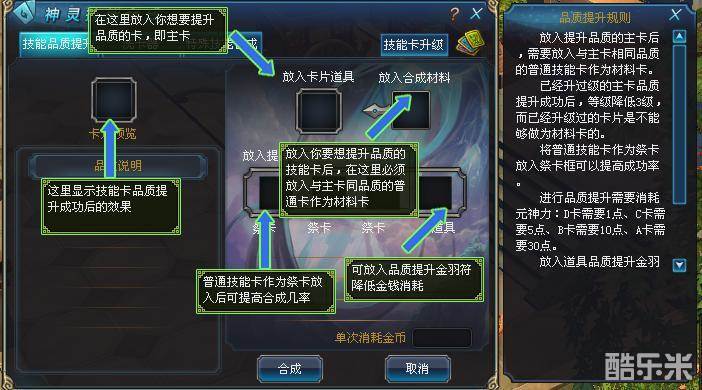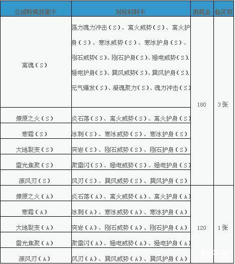 3.合成成功,获得对应的特殊技能卡,而材料卡、祭卡则消耗。合成失败,只返还材料卡。