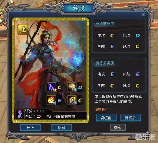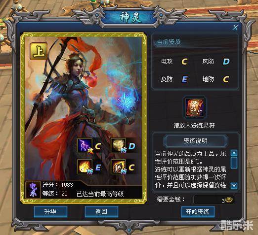 2.玩家可以通过【资练资质】功能将某个神灵品质的属性资质提升至最高,如上品神灵现在属性资质为E、E、C、E, 可资练为C、C、C、C。