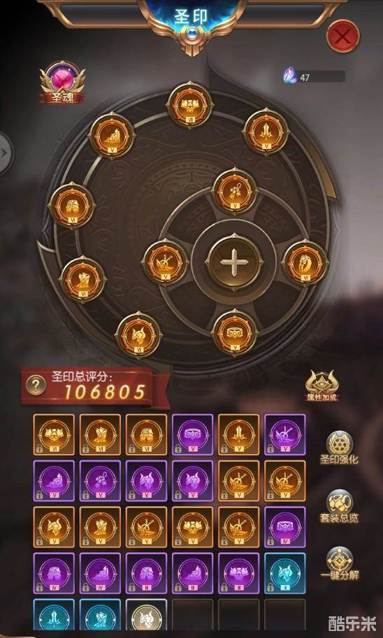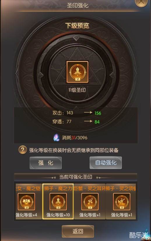 同样圣印也有高低之分,越高阶的圣印属性越好,对战力的提升也越好;多余或不用的圣印则可通过分解形成【精魄】,【精魄】则作为圣印强化的材料,强化等级在换装时会无损继承到同部位的装备。