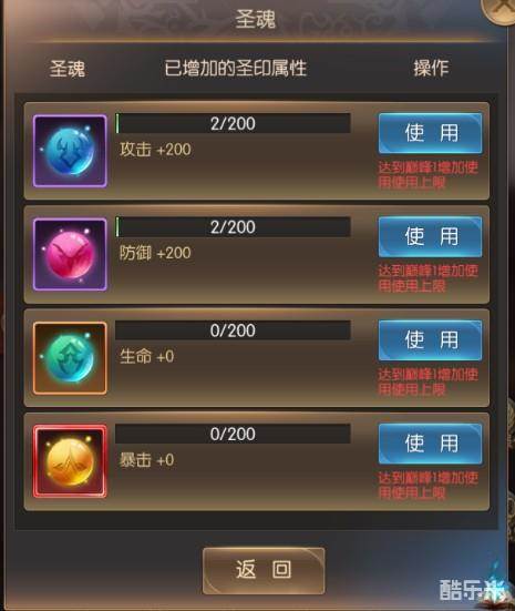 除了通过圣印强化,还可以通过圣魂来增加圣印的属性,而圣魂可以在领地商店中获取。