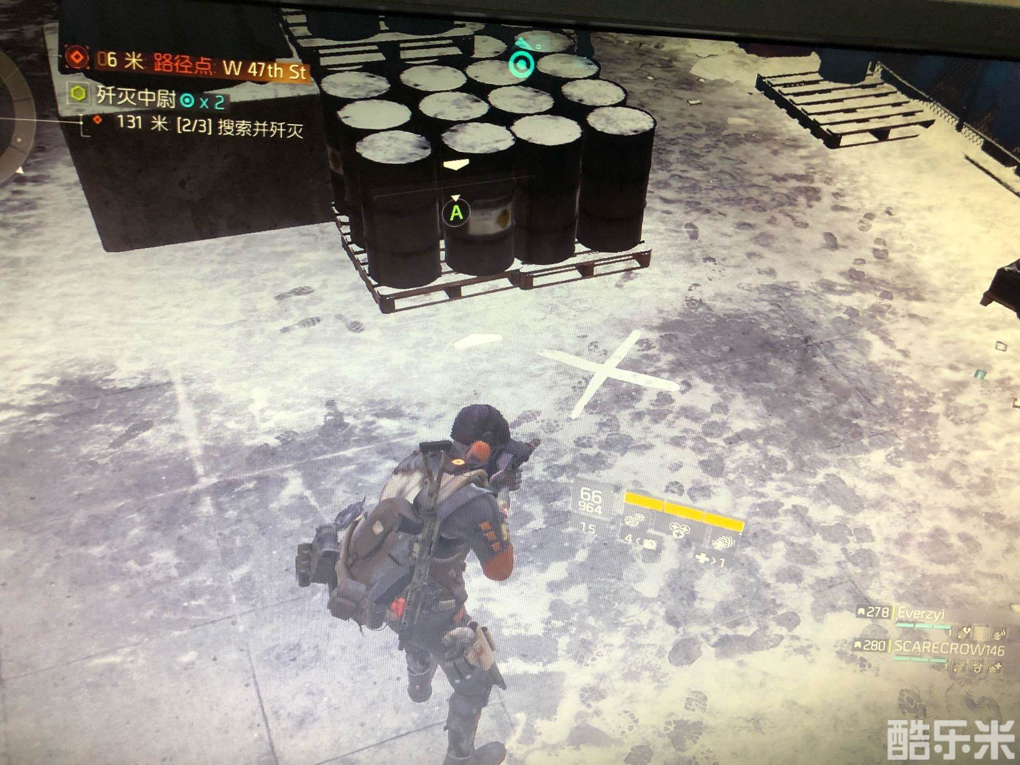 前戏做完,接下来开始纠结正戏。需要说明的是,这个任务没有提示,没有说明,没有箭头,并且由于是无倒数计时提示的限时任务,必须四人一起完成(其中任何一人达成上述的前提条件即可,不需要四个人)。我们的目标是要去找六个灰色的“X”标记,并按照一定的顺序先后在限时内完成,以此打开一扇位于西区码头,一名绝望特工逗留过的大门。以上三图对应第一组的三个“X”——分别1、对应396,1975航母附近;2、对应784,2242迪斯科一楼卡座;3对应640,2515垃圾回收处对面的加油站。请三名队员到达后按照1、2、3的顺序在“X”上按F键互动调查(没有任务提示)。如果符合前提条件的话能听到熟悉的任务音效(并且在第三个人互动后会听到一段语音提示(充能完成)。