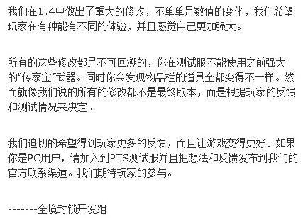 我们在1.4中做出了重大的修改,不单单是数值的变化,我们希望玩家在有种能有不同的体验,并且感觉自己更加强大。