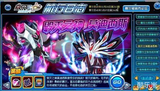 点击左上角的航线日志,选择“毁灭之神莫迪西斯”,再点击右下角的“GO”按钮,传送到活动场地。