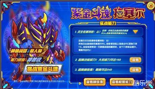 再出现的活动界面中,可以看到拉塞尔的介绍。点击挑战紫金斗魂,就可以与拉塞尔对战了哦!对战胜利可以获得拉塞尔的精元~ 每次挑战之后,会有10分钟的冷却时间,大家也可以用20000赛尔豆跳过冷却时间哦。
