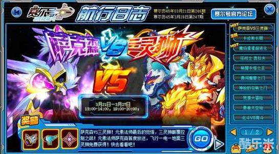 小赛尔在进入游戏后点击左上角的航线日志,选择“萨克森VS三灵狮”,再点击右下角的“GO”按钮,传送到活动场地。