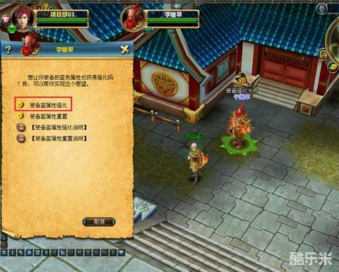 找到王国或大都找到【装备强化大师】与其对话:选择【装备蓝属性强化】。