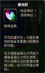 放入符合蓝属性重置条件的装备,每次强化需要消耗1个星光石以及一定数量的银币。