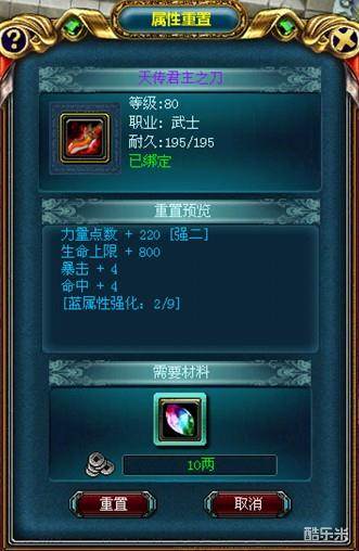 如果您对强化的属性不满意,还可以对蓝属性进行重置;只有蓝属性强化过的装备才可以进行重置。