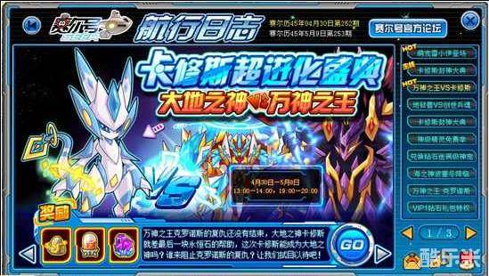 点击左上角的航线日志,选择“万神之王VS卡修斯”,再点击右下角的“GO”按钮,传送到活动场地。