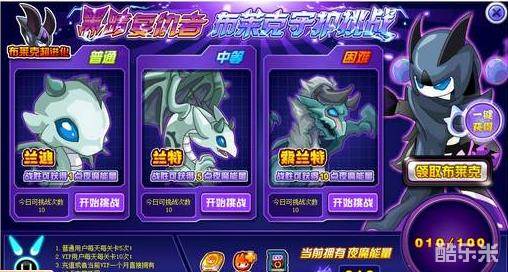 想要获得布莱克需要100点夜魔能量,战神索兰特的不同形态可以获得不同的夜魔能量点数。每天每个关卡可以挑战5次,VIP可以挑战10次。战胜兰迪可获得1点夜魔能量,战胜兰特可获得5点夜魔能量,战胜索兰特可获得10点夜魔能量。VIP玩家能免费直接领取10点。