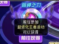 暗神之力是在“活动谁是超进化王者”中获得,玩家需要收集40个超进化令牌才能兑换暗神之力。