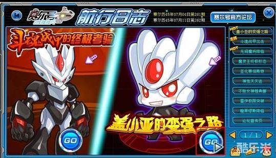 登录赛尔号,打开左上角的航行日志,选择“盖小亚的变强之路”,再点击右下角的GO按钮。