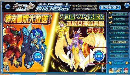 登录赛尔号,点击左上角的航行日志,选择“不败女神雅典娜”,在点击右下角的GO。